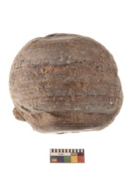 | Description / विवरण | Specimen of a spherical shaped hammer stone with battered surface |