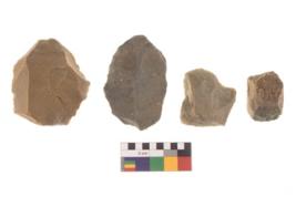 | Description / विवरण | There are n 4 flakes tool; there are multidirectional irregular scar pattern on them; made of short flakes and all four have tapering edges. |