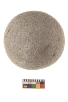 | Description / विवरण | Specimen of a spherical shaped hammer stone with battered surface |