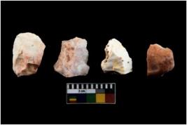 | Description / विवरण | There are n 4 of utilized worked cores and show irregular scar pattern. Two have a broken tip. |