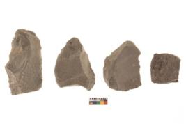 | Description / विवरण | There are n 4 flakes tool; there are multidirectional irregular scar pattern on them; made of short flakes and all four have tapering edges. |