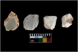 | Description / विवरण | There are n 4 of utilized worked cores and show irregular scar pattern on both dorsal and ventral side. Two are tapering at one end and two have a broken tip. |
