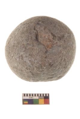 | Description / विवरण | Specimen of a rounded shaped hammer stone with battered surface |