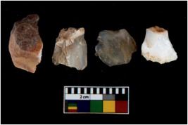 | Description / विवरण | There are n 4 utilized flake cores. There are multi directional irregular scar pattern on them. One is tapering at one end and three have blunted edges. |