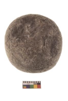 | Description / विवरण | Specimen of a spherical shaped hammer stone with battered surface |