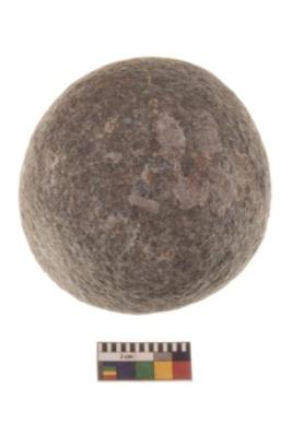 | Description / विवरण | Specimen of a spherical shaped hammer stone with battered surface |