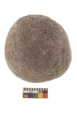 | Description / विवरण | Specimen of a spherical shaped hammer stone with battered surface |