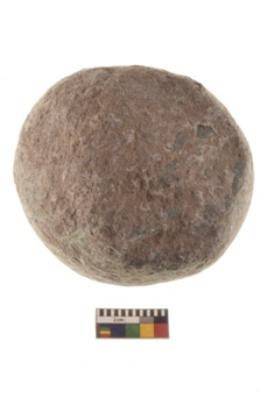 | Description / विवरण | Specimen of a hammer stone roughly rounded in shape with grounded edges and flattish base. |