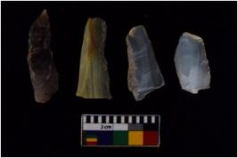 | Description / विवरण | There are n 4 flake cores. All of them are fully fluted flake cores without any trace of crested ridge flakes. Some are tapering at one end. Some have flat base and few have blunted edges. |
