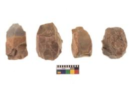 | Description / विवरण | There are n 4 of utilized worked cores and show irregular scar pattern on both dorsal and ventral side. They have sharp edges while three have a flat base. |