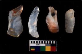 | Description / विवरण | There are n 4 Flake tool; There are multidirectional irregular scar pattern on them. few have blunt edges, Some of them are tapering at one end. |