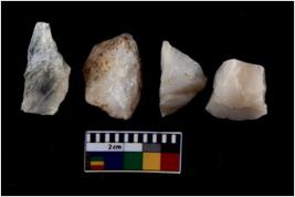 | Description / विवरण | There are n 4 utilized flake cores. One is tapering at one end and three have blunted edges. |