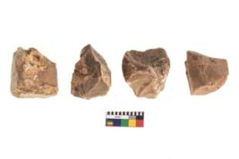| Description / विवरण | There are n 4 of utilized worked cores and show irregular scar pattern on both dorsal and ventral side. Three have a broken tip while one is tapering at one end. |