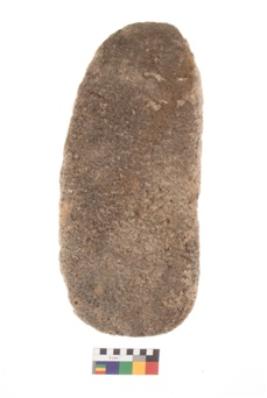 | Description / विवरण | Specimen of an oval shaped rubber stone with rectangular section and concave end. |