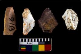 | Description / विवरण | There are n 04 objects; all of them have sharp edges. Three are in same size with blunt sides. The detachment of scar of the flakes are noticeable. |