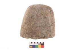 | Description / विवरण | Specimen of an oval shaped rubber stone with rectangular section and concave end. |