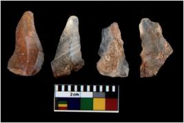 | Description / विवरण | There are n 4 utilized flake cores. There are multi directional irregular scar pattern on them. All of them are tapering at one end. |