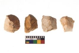 | Description / विवरण | There are n 4 of utilized worked cores and show irregular scar pattern on both dorsal and ventral side. Two have a broken tip. |