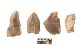| Description / विवरण | There are n 4 of utilized worked cores and show irregular scar pattern on both dorsal and ventral side. Three are tapering at one end while one has a broken tip. |