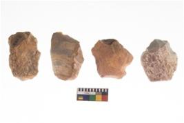 | Description / विवरण | There are n 4 of utilized worked cores and show irregular scar pattern on both dorsal and ventral side. Two have broken tip. |