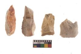 | Description / विवरण | There are n 4 of utilized worked cores and show irregular scar pattern on both dorsal and ventral side. Two are elongated in shape. |