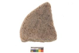 | Description / विवरण | Specimen of an oval shaped rubber stone with rectangular section and concave end. |