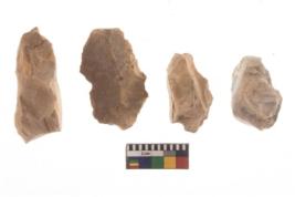 | Description / विवरण | There are n 4 of utilized worked cores and show irregular scar pattern on both dorsal and ventral side. Three have a broken tip. |