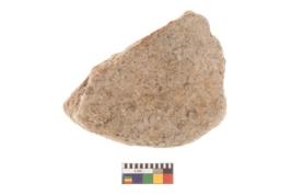 | Description / विवरण | Specimen of a spherical shaped hammer stone with battered surface. |