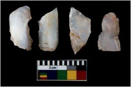 | Description / विवरण | There are n 4 utilized flake cores. There are multi directional irregular scar pattern on them. Two are tapering at one end and two have sharp edges. |