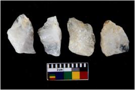 | Description / विवरण | There are n 4 utilized flake cores. Three are tapering at one end and one has blunted edges. |