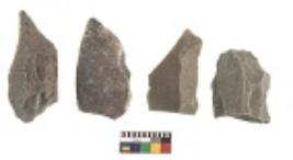| Description / विवरण | There are n 4 utilized flake cores. There are multidirectional irregular dominant scar pattern on both dorsal and ventral face of the flake cores. Two have sharp edges and two have blunted edges. |