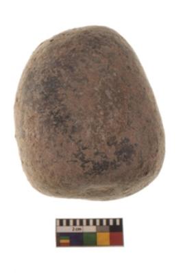 | Description / विवरण | Specimen of a oval shaped hammer stone with battered surface |