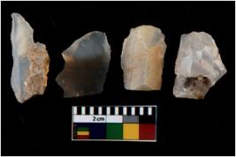 | Description / विवरण | There are n 4 utilized flake cores. There are multi directional irregular scar pattern on them. One is tapering at one end and three have blunted edges. |