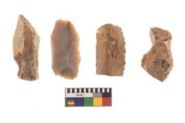 | Description / विवरण | There are n 4 of utilized worked cores and show irregular scar pattern on both dorsal and ventral side. One has a flat base. |