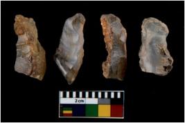 | Description / विवरण | There are n 4 utilized flake cores. Out of them one is made up of Chert and three are made up of Chalcedony. There are multi directional irregular scar pattern on them. All of them are tapering at one end. |