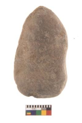 | Description / विवरण | Specimen of triangular shaped Axe with lenticular section and pointed butt. It is under side flat and upper slightly bulging out. |