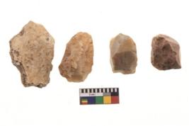 | Description / विवरण | There are n 4 of utilized worked cores and show irregular scar pattern. One has a flat base. |