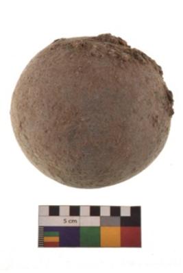 | Description / विवरण | Specimen of a spherical shaped hammer stone with battered surface |