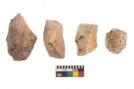 | Description / विवरण | There are n 4 of utilized worked cores and show irregular scar pattern on both dorsal and ventral side. Three have a broken tip. |