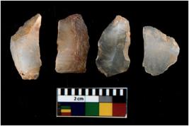 | Description / विवरण | There are n 4 utilized flake cores. There are multi directional irregular scar pattern on them. All of them are tapering at one end. |