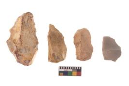 | Description / विवरण | There are n 4 of utilized worked cores and show irregular scar pattern on both dorsal and ventral side. One has a broken tip. |
