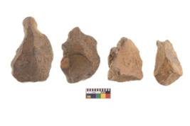 | Description / विवरण | There are n 4 of utilized worked cores and show irregular scar pattern on both dorsal and ventral side. One has a flat base while one has a broken tip. |