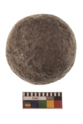 | Description / विवरण | Specimen of a spherical shaped hammer stone with battered surface |