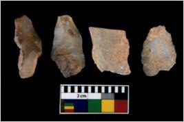 | Description / विवरण | There are n 4 utilized flake cores. There are multi directional irregular scar pattern on them. Two are tapering at one end and two have blunted edges. |