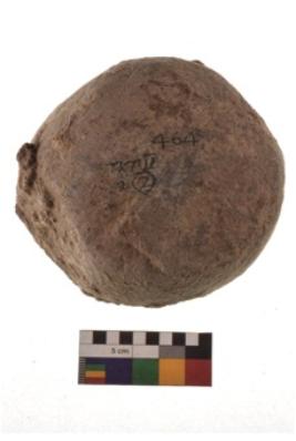 | Description / विवरण | Specimen of a spherical shaped hammer stone with battered surface |
