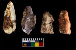 | Description / विवरण | There are n 04 objects; among them three are having flat surface also having flaking mark on the body. All are tapering at one end. Sizes and shapes are vary. |