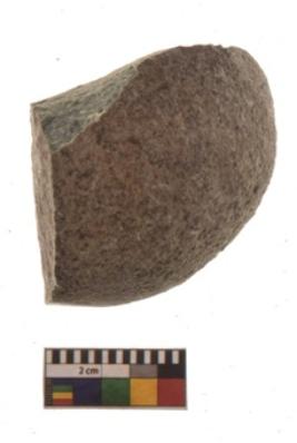 | Description / विवरण | Specimen of a broken hammer stone with battered surface |