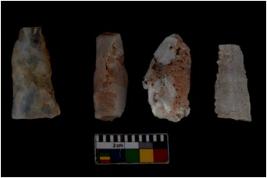 | Description / विवरण | Cores, with several broad fluted marks from almost all the sides indicating the detached blades from it. |
