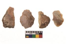| Description / विवरण | There are n 4 of utilized worked cores and show irregular scar pattern on both dorsal and ventral side. Three are tapering at one end. |