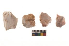 | Description / विवरण | There are n 4 of utilized worked cores and show irregular scar pattern on both dorsal and ventral side. Two have broken tip. |